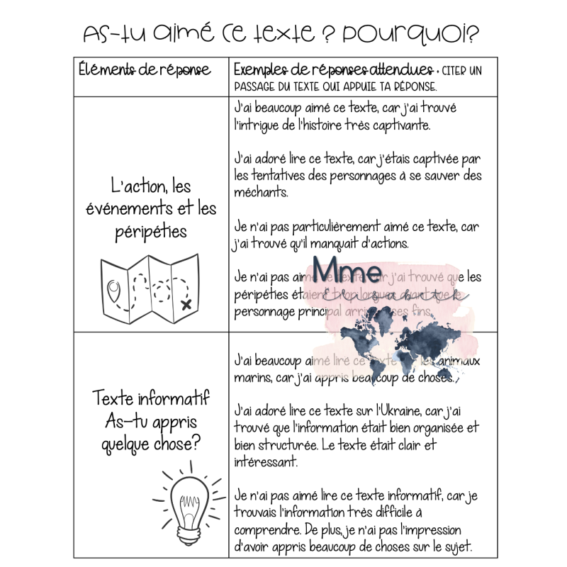 On a beau la travailler, il semble que les élèves aient toujours de la difficulté à fournir une réponse complète.
