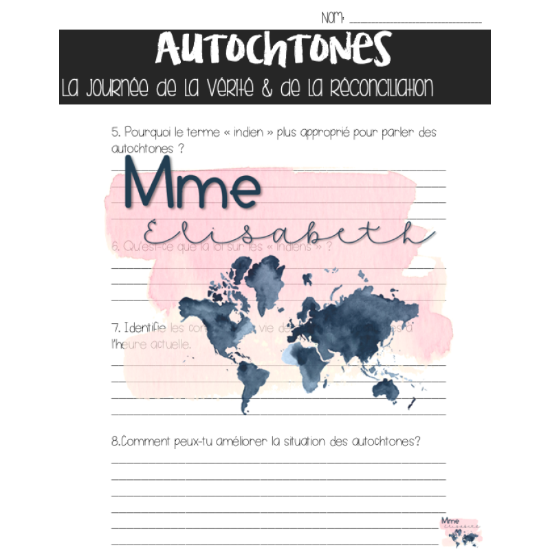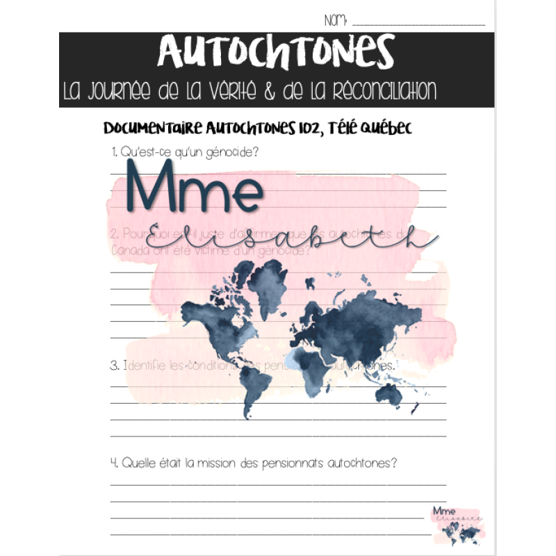 1. 1 questionnaire de 2 pages pour accompagner le mini documentaire de Télé Québec sur les autochtones
