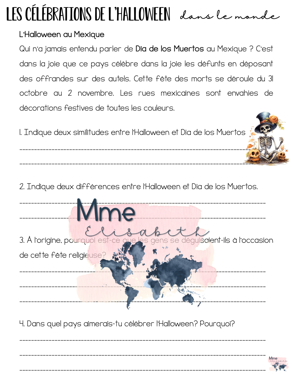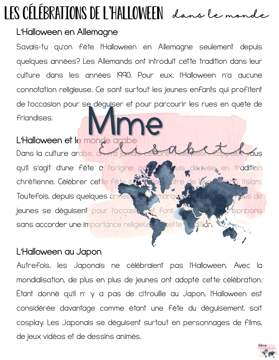 Texte informatifs sur les célébrations de l'Halloween dans le monde