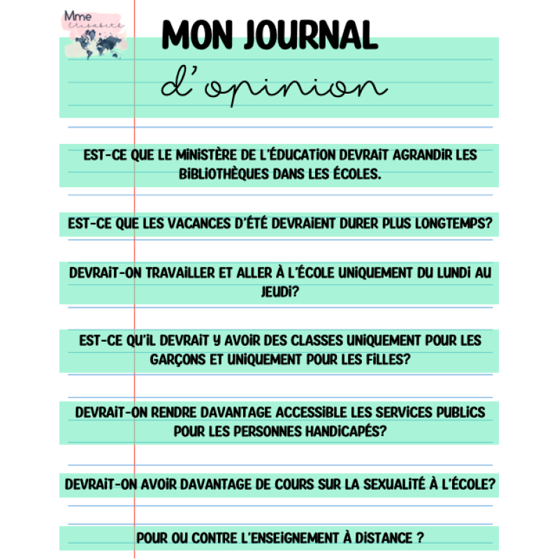 5. Un journal d'opinion ( Bandelettes à découper et coller pour travailler le texte d'opinion en 5 à 7 )