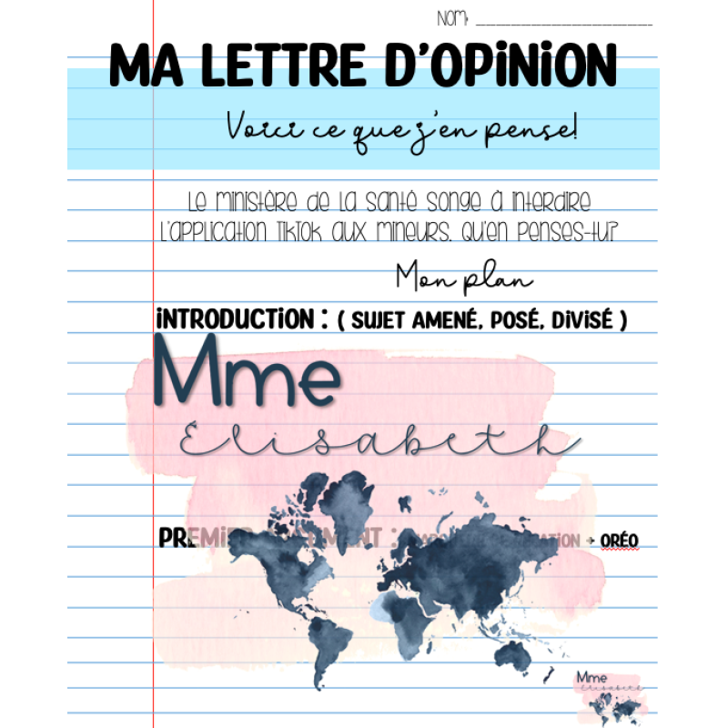 8. Modélisation d'une lettre d'opinion + plan de rédaction structuré et guidé