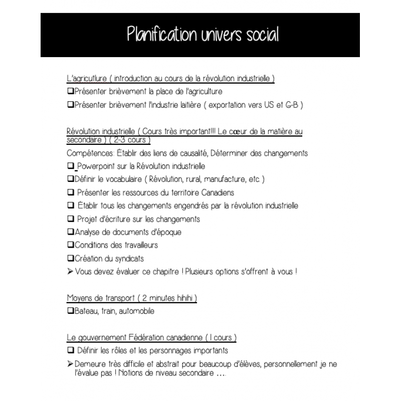 À la demande, voici une planification annuelle pour l'univers social de 6e année en intensif.
