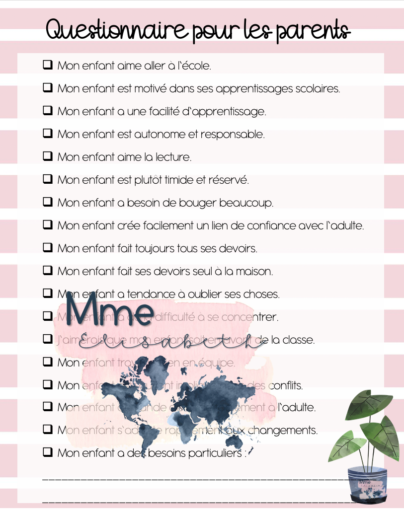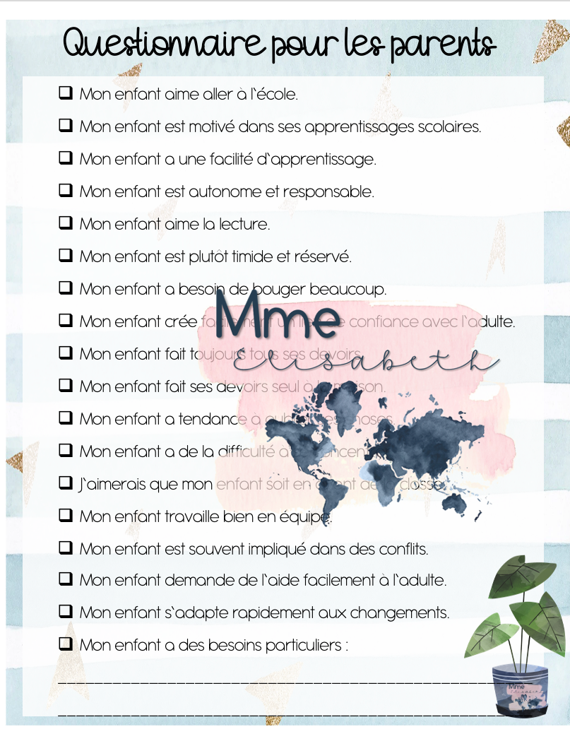 Personnellement, je trouvais important d'avoir l'impression des parents pour apprendre à connaître mes élèves!