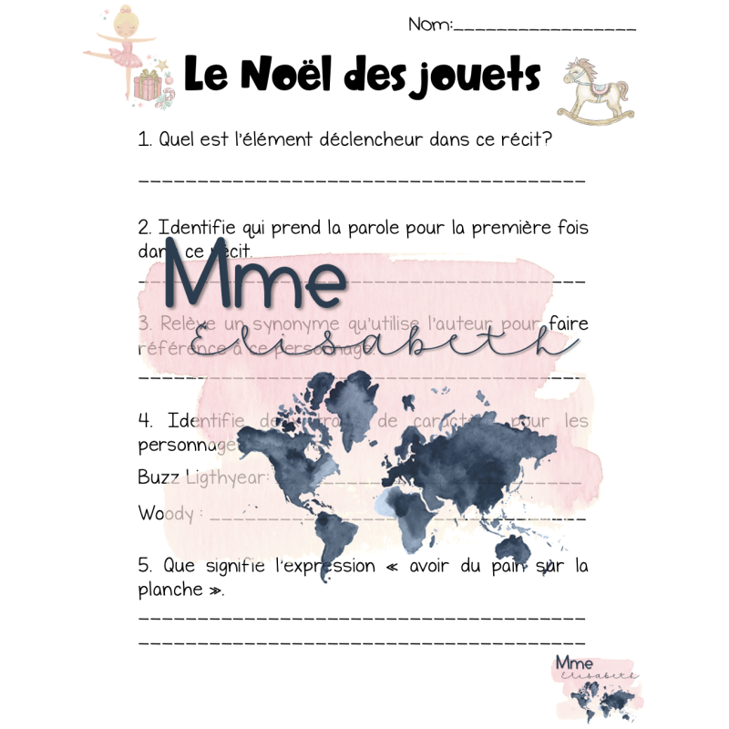 Compréhension de lecture inspirée du film l'Histoire de jouets
