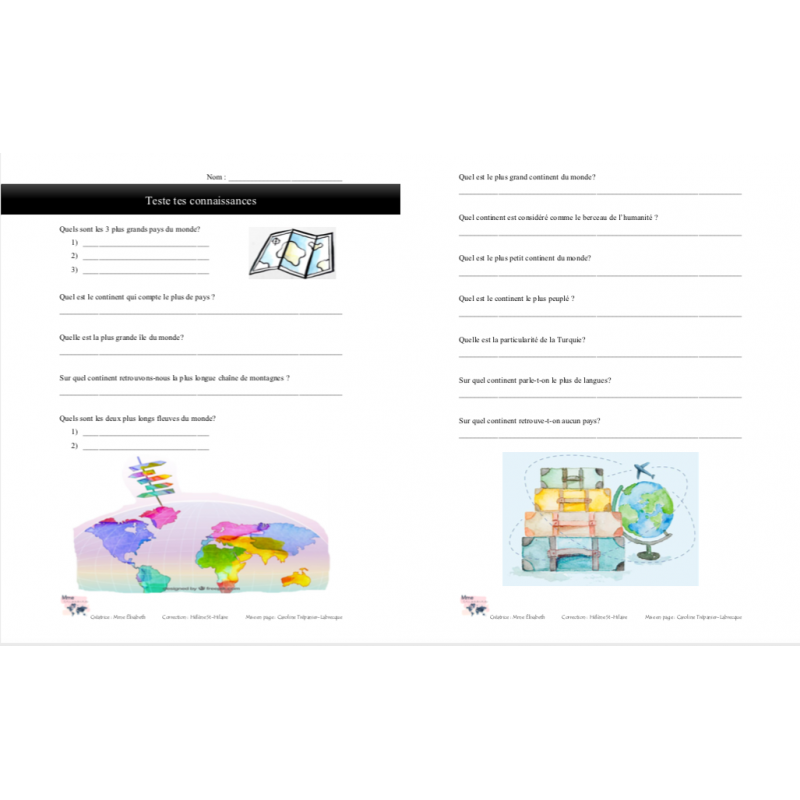 * Ce document se retrouve dans l'achat du Tour du monde en 180 jours