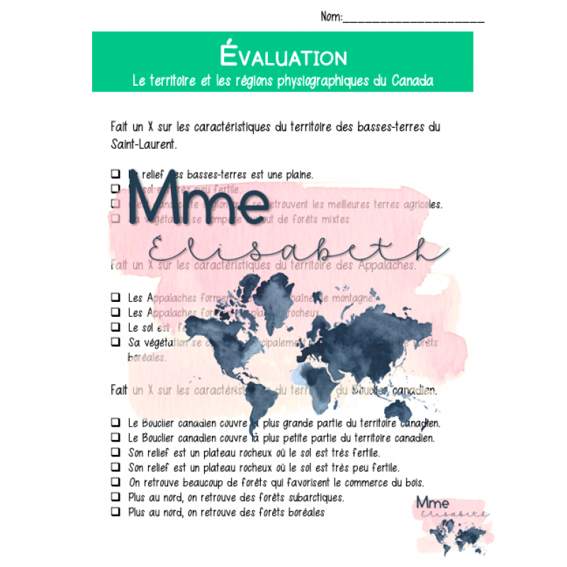 Évaluation de deux pages sur les régions physiographiques du Canada.