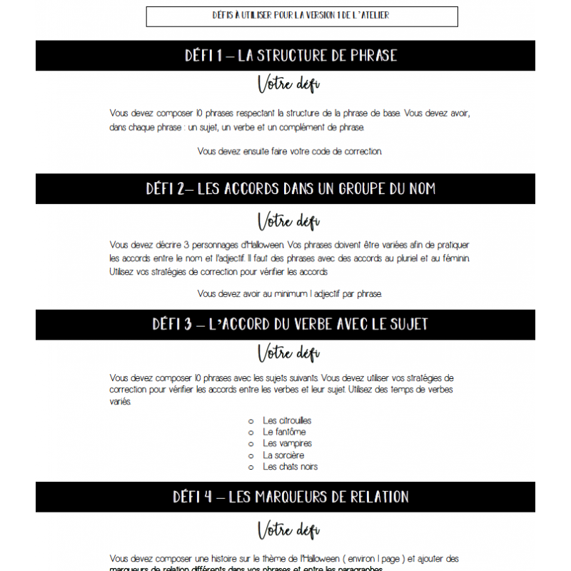 Dans ce document vous retrouverez les explications ainsi que les défis à découper pour vos élèves.
