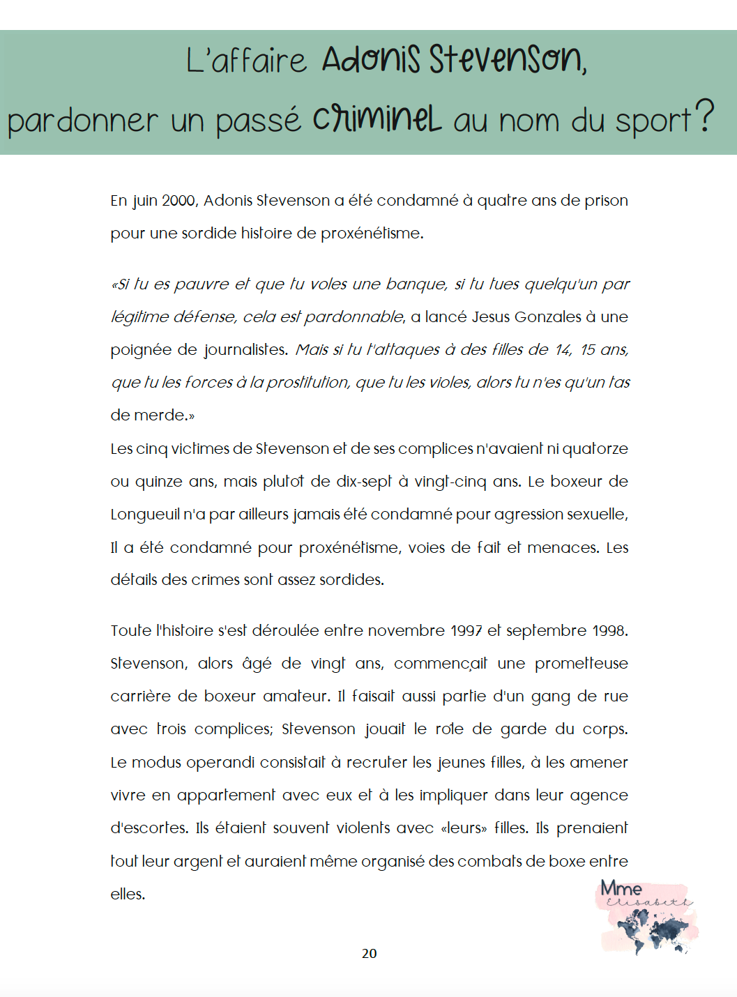 Article de journal, réflexions et questions éthiques