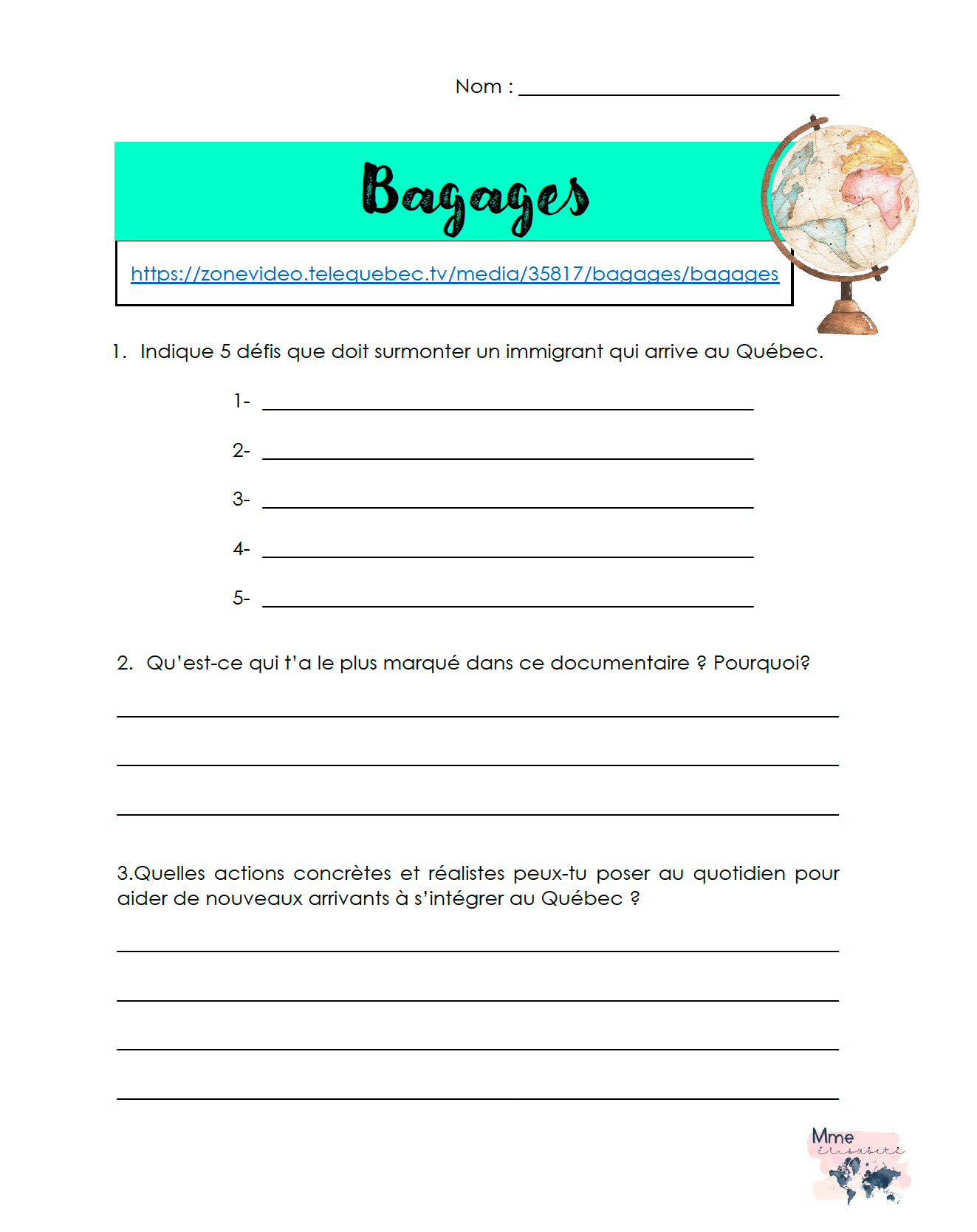 Vous retrouverez un questionnaire sur le documentaire Bagages.